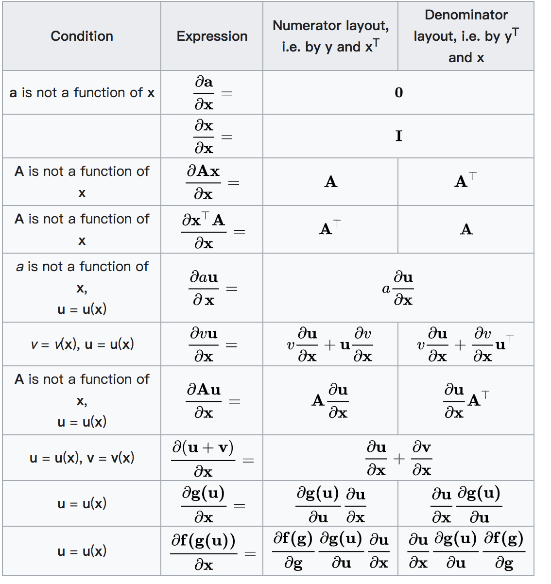 参考链接:https://en.wikipedia.org/wiki/Matrix_calculus#Scalar-by-vector_identities
