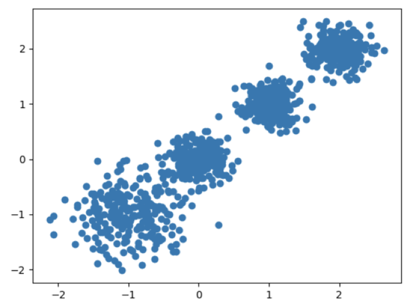 # 簇中心在[-1,-1], [0,0],[1,1], [2,2], 簇方差分别为[0.4, 0.2, 0.2, 0.2]