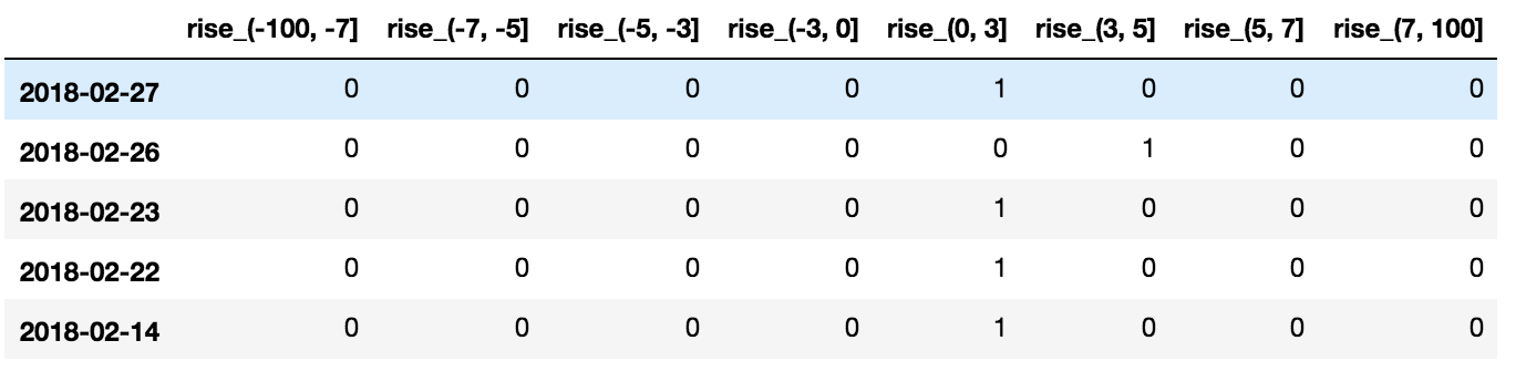 3.3 股票涨跌幅分组数据变成 one-hot 编码